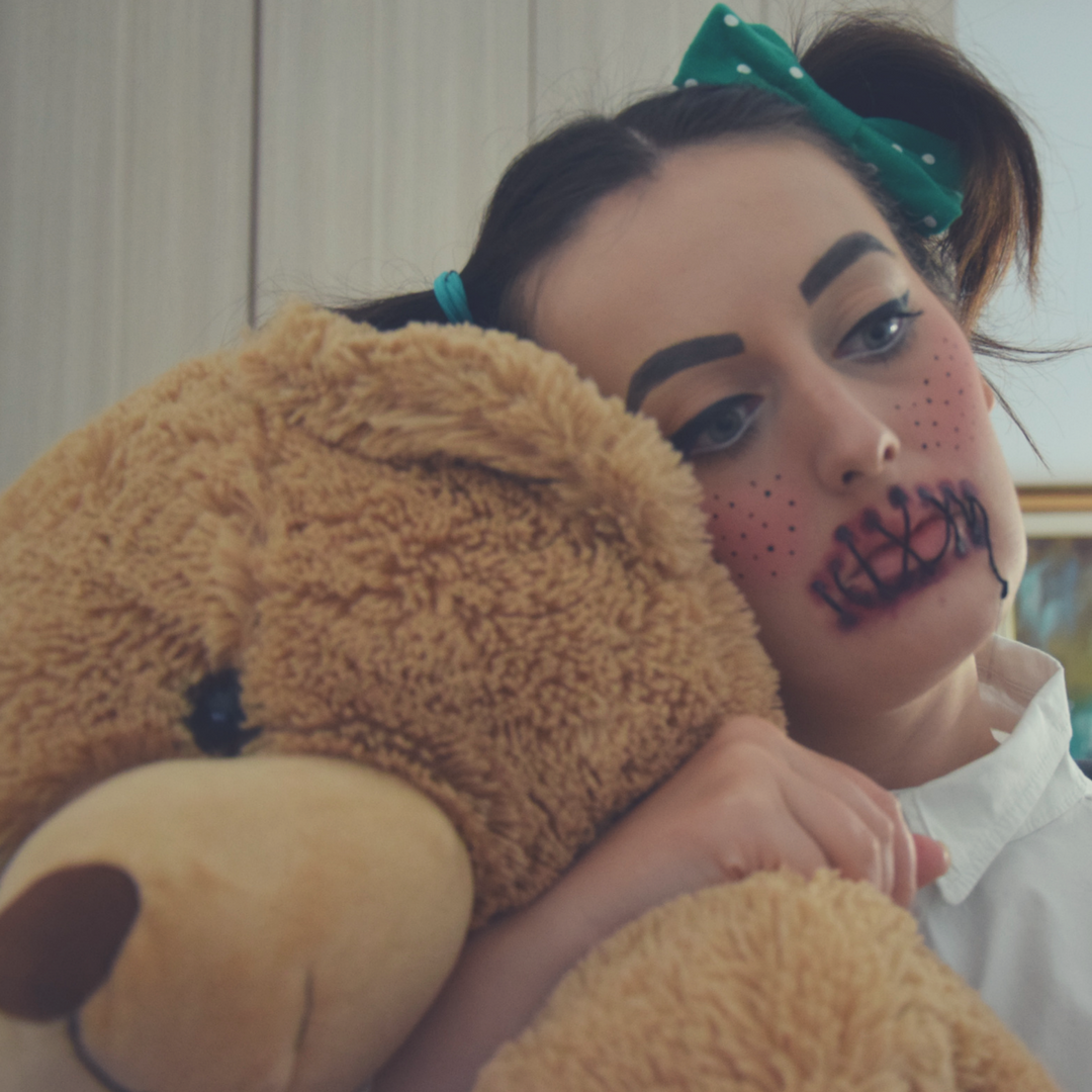 I decided to do a scary doll, with stitched mouth and the hanging needle. Out of all the Halloween inspired subjects, for me dolls and clowns are for sure the creepiest. In general it was a simple makeup to achieve even though the stitching part took some time..but everyone could do it easily.